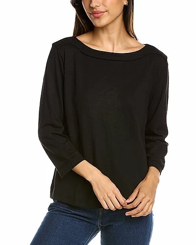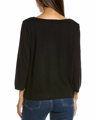 - 3/4-Sleeve Seamed Boatneck T-Shirt in black with raw edge details
