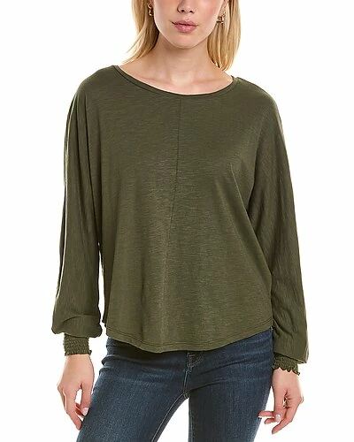 - Boatneck Dolman Top in parsley with smocked cuffs and rounded hem