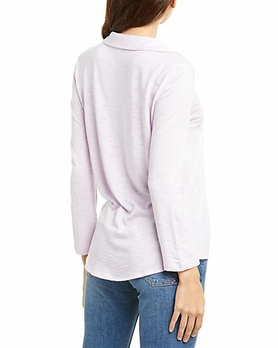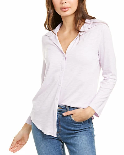 - Button Down Shirt in lilac with 3/4-length sleeves and curved hem