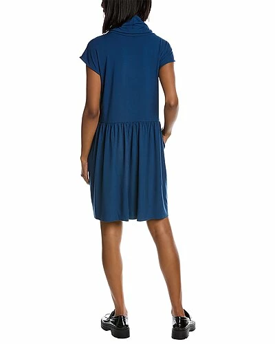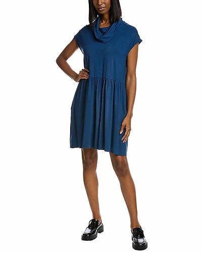 - Cowl Neck Mini Dress in lagoon with shirred waist and side seam pockets