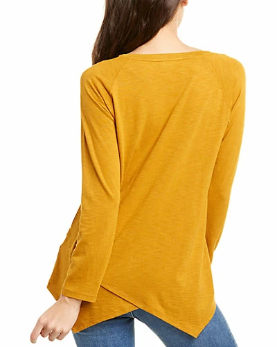 - Crossed Front Top in curry with raglan sleeves and trapeze hem
