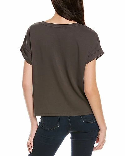 - Dolman T-Shirt in dolphin with dolman sleeves, front seam, and rolled cuffs