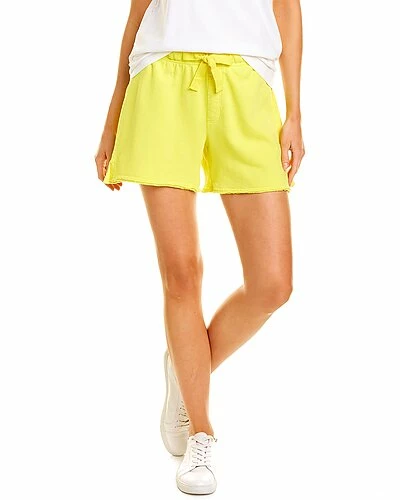 - Drawstring Short in lemongrass with elasticized drawstring waist, back patch pocket and split hem