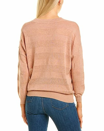 - Easy Jewel Neck Linen-Blend Sweater in sepia with dropped-shoulder sleeves and ribbed trim