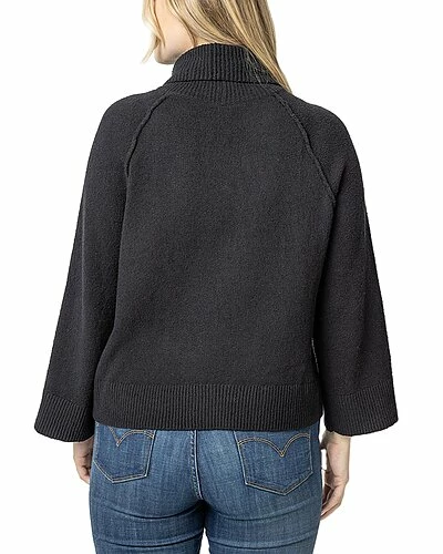 - Easy Turtleneck Sweater in black with raglan sleeve, exposed seaming, low armholes, wider sleeves. bracelet length sleeve, boucle texture