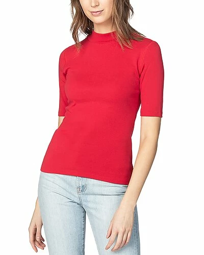 - Elbow Sleeve Mock Neck T-Shirt in cherry with mock neck, elbow sleeve, fitted