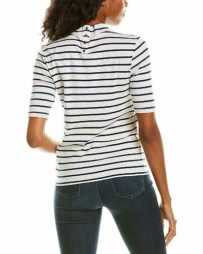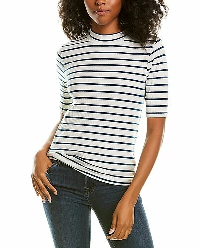 - Elbow-Sleeve Mock Neck Top in dew stripe with ribbed design
