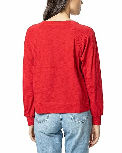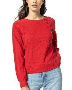 - Full Sleeve Button Raglan Top in salsa with long sleeve, facing at neck, button detail, slub cotton