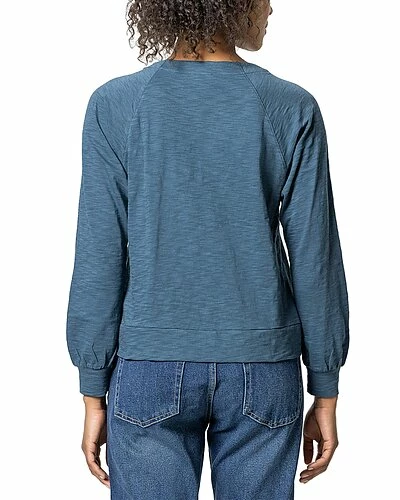 - Full Sleeve Button Raglan Top in lagoon with long sleeve, facing at neck, button detail, slub cotton