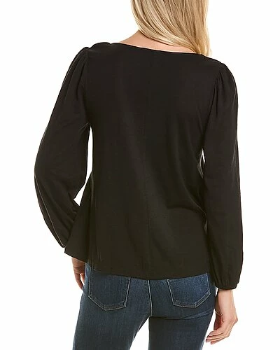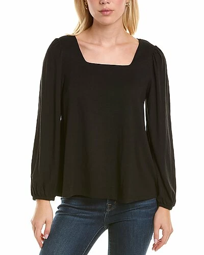 - Full Sleeve Square Neck Top in black with shirred shoulders and elasticized cuffs