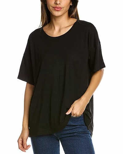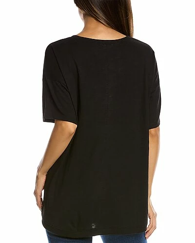 - High-Low Elbow-Sleeve T-Shirt in black with rounded rib hem and relaxed fit