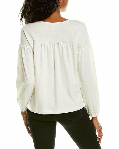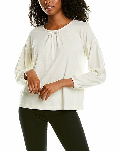 - Lantern Sleeve Top in gardenia with shirring details and dropped-shoulder lantern sleeves with elasticized cuffs