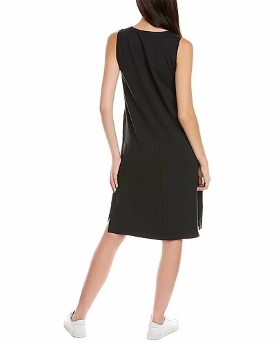 - Midi Dress in black with rib inset at neck and side slits at seams