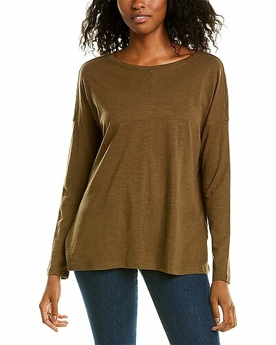 - Oversized Boxy Top in earth with boat neck, dropped-shoulder sleeves and ribbed trim