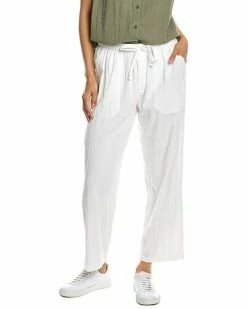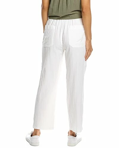 - Pull-On Pant in white with double gauze design, elasticized drawstring waist, and four-pocket styling