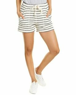 - Pull-On Short in navy stripe with elasticized drawstring waist and two front pockets