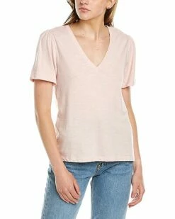 - Rib Trim V-Neck T-Shirt in camellia
