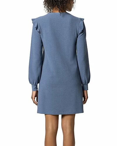 - Ruffle Cap Long Sleeve Dress in indigo with long sleeve, waffle texture, ruffle detail at sleeve, full sleeve