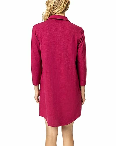 - Shirt Dress in currant with 3/4 sleeve, collar, button down